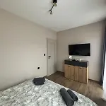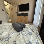 الفناء والشرفة مع نوافذ عازلة للصوت، فضلاً عن المرافق الحديثة مثل جهاز التلفزيون وتلفزيون بشاشة مسطحة مع قنوات فضائية تضمن إقامة ممتعة. كما تمّ تجهيز هذه الشقة بالصالون. تتوفّر أسرّة مع وسائد محشوة بالريش تحت تصرف الضيوف. يشتمل مكان الإقامة على المرحاض المنفصل والدوش لتعزيز راحتك. علاوة على ذلك، هناك مجفف الشعر وملاءات الحمام والمناشف أيضًا.